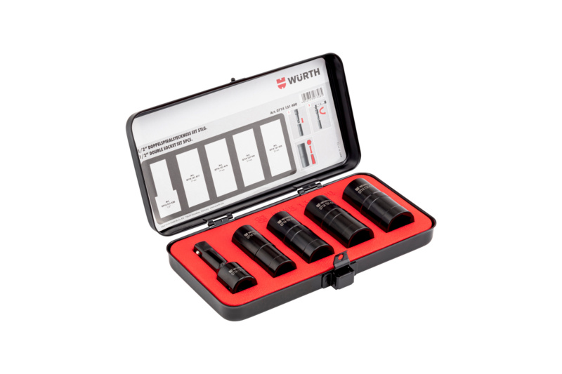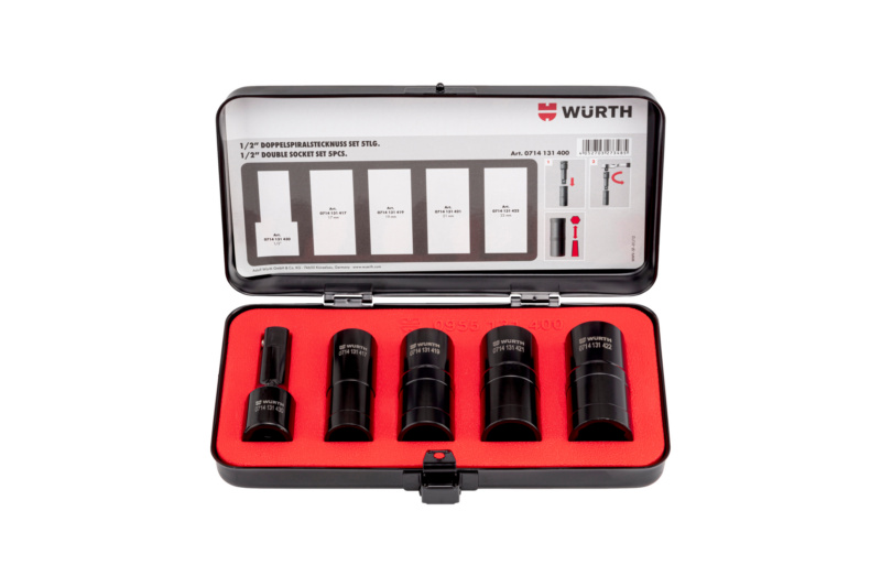 Kurzbeschreibung: 1/2-Zoll-Doppelspiralstecknuss-Set - 5-tlg. - Problemlöser für festgerostete und rundgedrehte Radmuttern