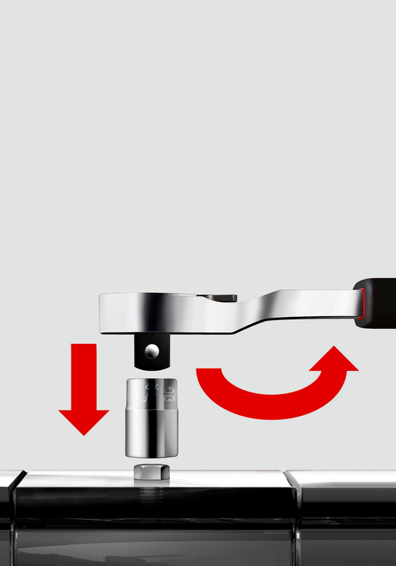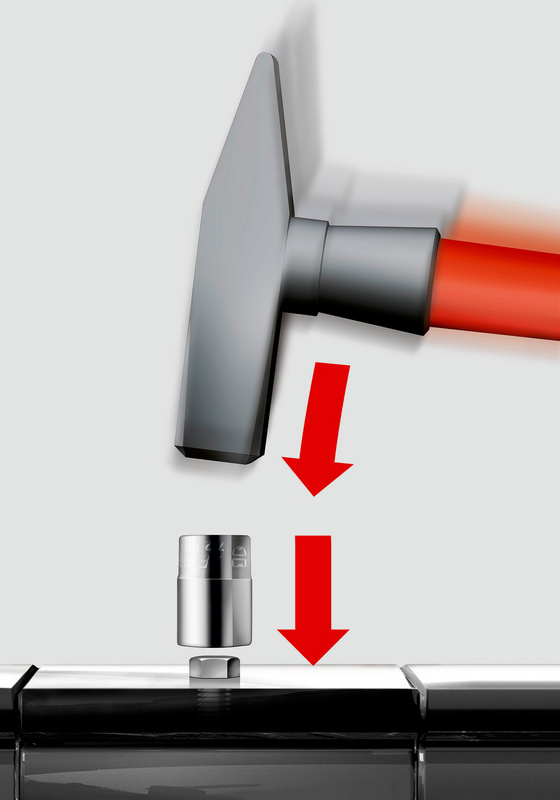 Präzise gefertigtes konisches Spiralprofil Antrieb 3/8 Zoll, Größe 8–14 mm Alle Stecknüsse haben zusätzlich eine Schlüsselfl äche für den Außenantrieb Schlagschrauber geeignet Einfaches Ausdrehen von rundgedrehten Schrauben oder Muttern