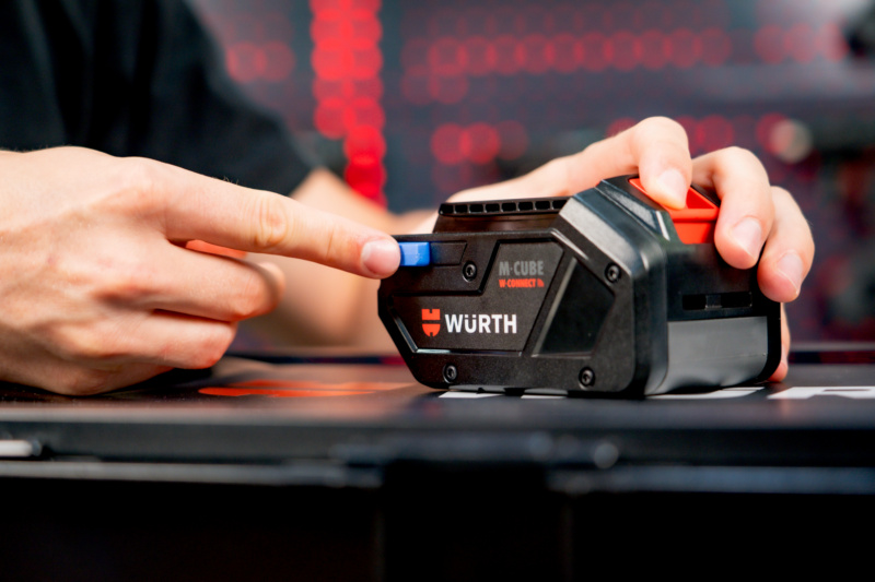 Der M-CUBE W-CONNECT Akku verfügt über eine Aufnahme für das Modul WCM-BT, welches die Geräte zur einfacheren Betriebsmittelverwaltung vernetzt.