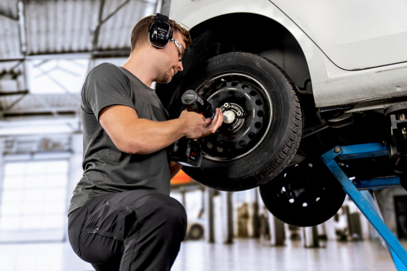 Im Kraftfahrzeugbereich kommt der ASS 18-1/2" COMPACT M-CUBE zum Lösen der Radbefestigungen zum Einsatz.