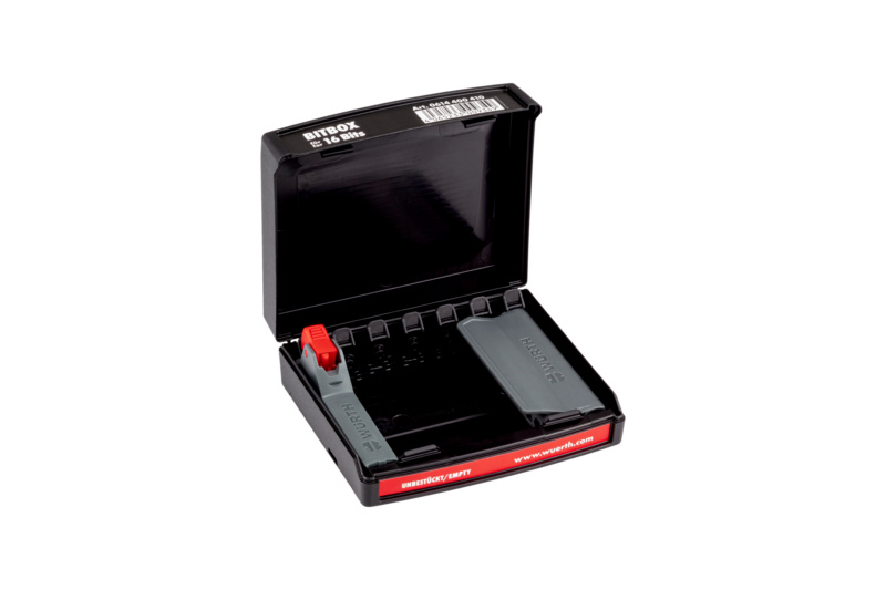 Kurzbeschreibung: Bitbox Größe 4 - leer - ORSY-System-Bitbox aus hochwertigem Kunststoff zum Bestücken von max. 16 Bits in den Längen 25 mm und 70 mm und einem Bithalter