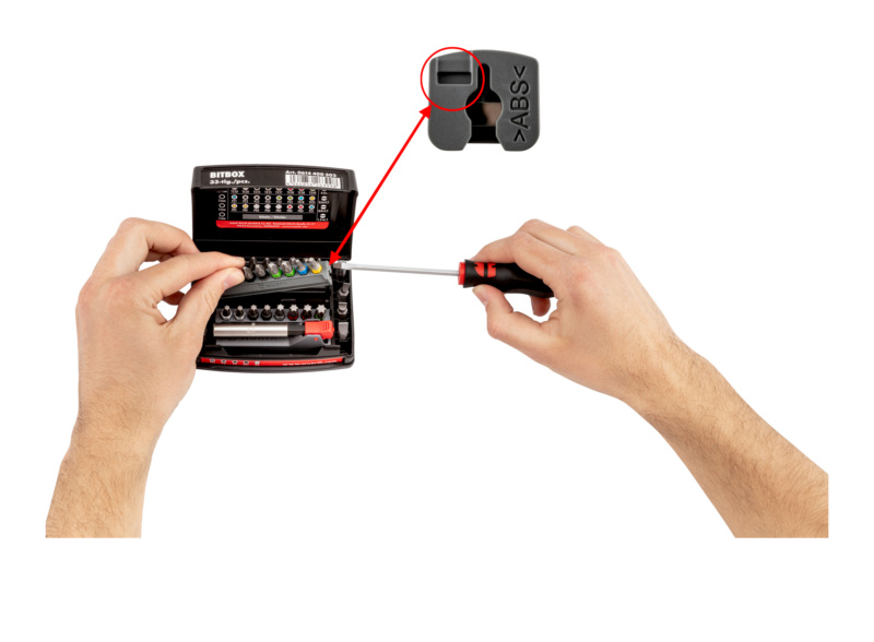 Kurzbeschreibung: Bitriegel - 8-teilig - Bestückter Bitriegel mit TX-, PH- und Innensechskant-Abtrieb passend für ORSY-System-Bitbox Größe 2, 3 und 4