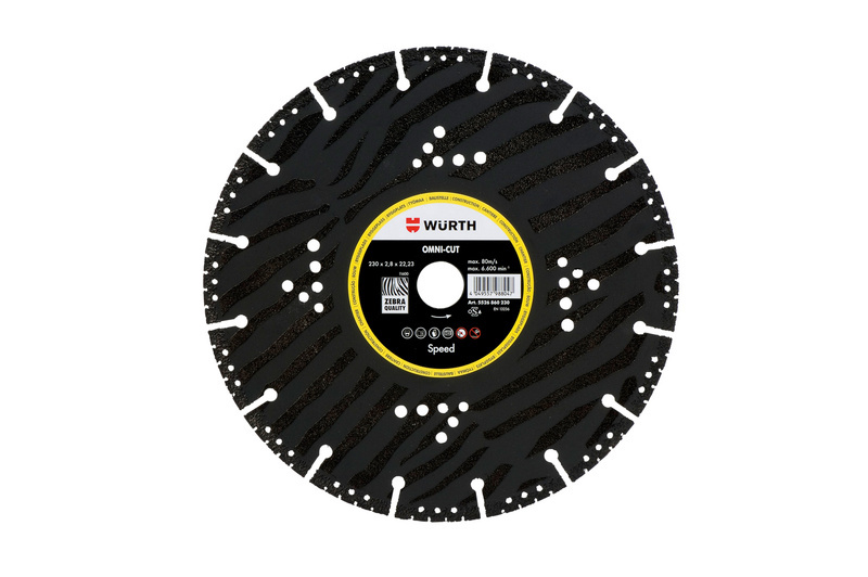 Hinweis: Diamanttrennscheiben werden bei zu hohen Drehzahlen stumpf und verschleißen zu schnell bei zu niedriger Umfangsgeschwindigkeit