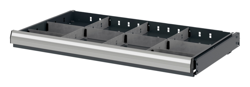 Kurzbeschreibung: Einteilungssortiment - mit Fachschienen und Fachteiler für Systemmaß 16.6 - Trennelemente aus verzinktem Stahlblech zur praxisgerechten und flexiblen Unterteilung der Schubladen, passend abgestimmt auf das jeweilige Schubladenmaß.