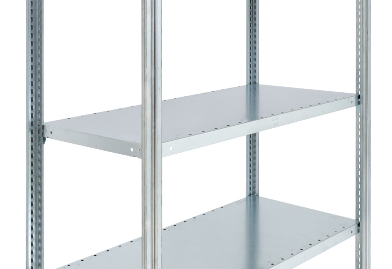 Stahlfachboden mehrfach gekantet, inklusive 4 Fachbodenträger Kantenhöhe 40 mm mit Systemlochung für weiteres Zubehör Einfache Positionierung durch Fachbodenträger (werkzeuglos montierbar)