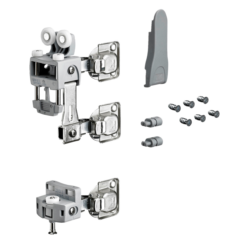 Kurzbeschreibung: Falttürbeschlag mit unterer Führung ohne Schließautomatik - WingLine L - Der Falttürbeschlag für große Türen ermöglicht einen perfekten Zugriff auf bis zu 6 m² Schrankinhalt