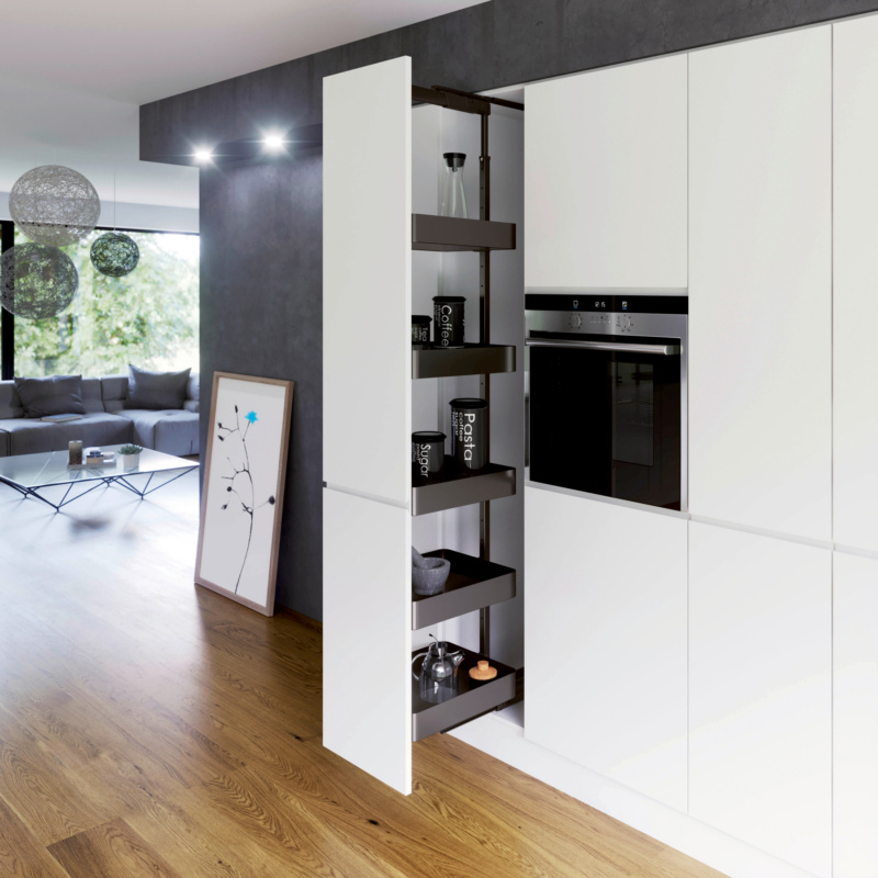 Kurzbeschreibung: Hochschrankvollauszug VS TAL LARDER - Mit integriertem Selbsteinzug und Dämpfung