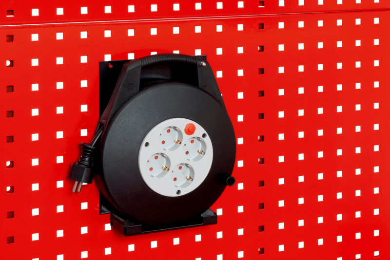 Kurzbeschreibung: Kabeltrommel - für Quadratlochung in Lochplatten, Werkstattwagen und ORSY<SUP>®</SUP>1-Regalsystem