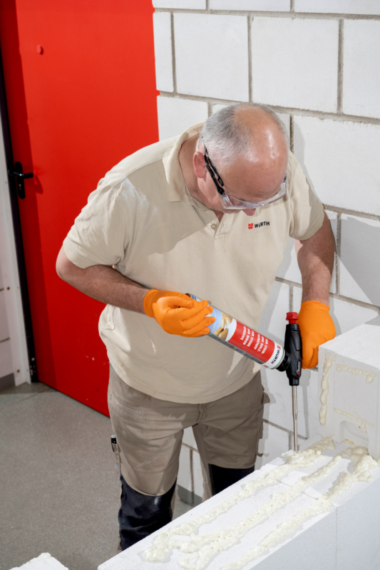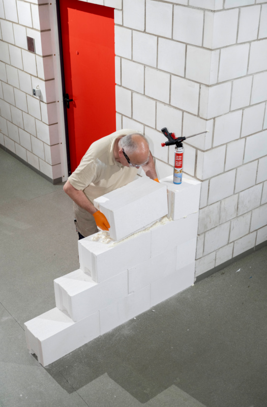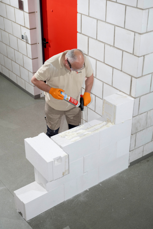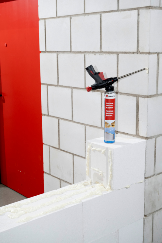 PUR Stein- und Holzklebstoff - PU Hochleistungsklebstoff für Holzverklebungen und die Verklebung von verschiedenen Mauersteinen mit planen Klebeflächen. Geeignet für untergeordnete Wandbauten ohne statische Relevanz z.B. Abtrennungen, Trockenbau.