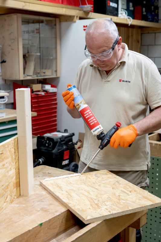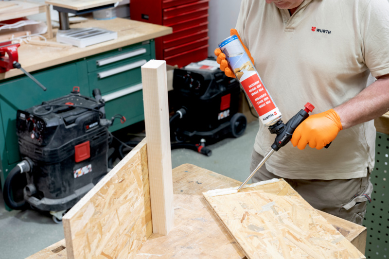 Grundsätzlich sollte das Holz vor der Verarbeitung auf diejenige Feuchte getrocknet werden, die annähernd dem Gleichgewicht seiner späteren Umgebung entspricht. Eventuelle Kleberüberstände nach Aushärtung abschneiden. Spritzer sofort PU-Schaumreiniger PURlogic clean Art. Nr. 0892160 entfernen. Ausgehärteter Klebstoff kann nur noch mechanisch entfernt werden. Die Pistole nach Verwendung gut mit dem PU-Schaumreiniger PURlogic clean Art. Nr. 0892160 reinigen.