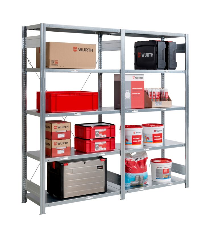 Kurzbeschreibung: Steckregal Profi - Stabiles Steckregal mit 5 Stahlfachböden für hohe Belastungen in Lager, Werkstatt und Betrieb