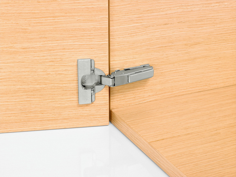 Kurzbeschreibung: Topfscharnier Nexis Click-on 110 - mit geringer Topftiefe für dünne und profilierte Türen