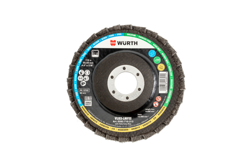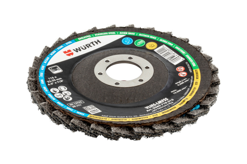Kurzbeschreibung: Vlies-Lamellenfächerschleifscheibe RED PERFECT<SUP>®</SUP> 3D - für den direkten Einsatz auf Winkelschleifern - Zum Reinigen und Mattieren von unlegierten und hochlegierten Stählen, Aluminium und NE-Metallen