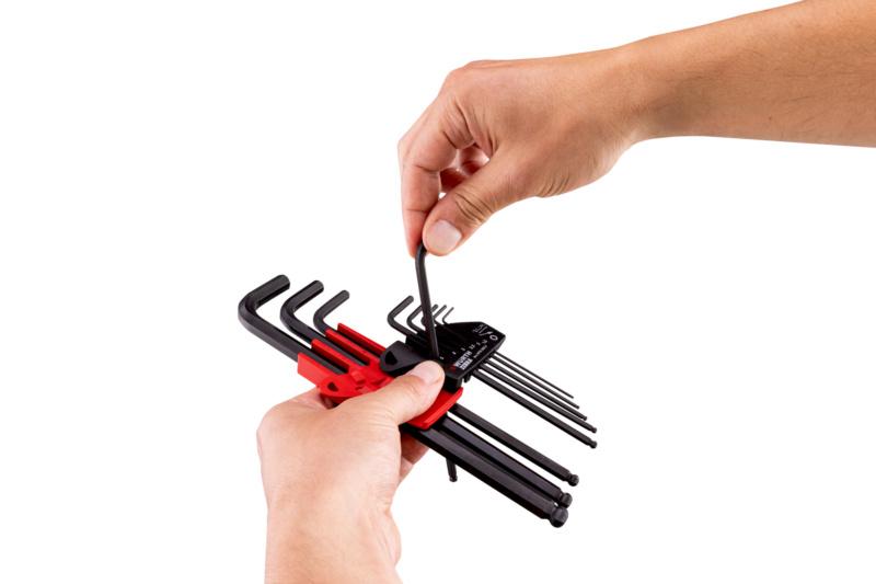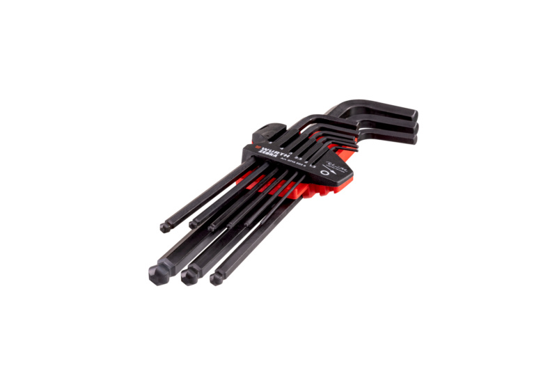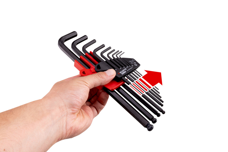 Kurzbeschreibung: Winkelschraubendreher-Satz RW Edition - 9-tlg. - Innensechskant mit Kugelkopf, extra lange Ausführung, im Kunststoffhalter mit Schiebefunktion