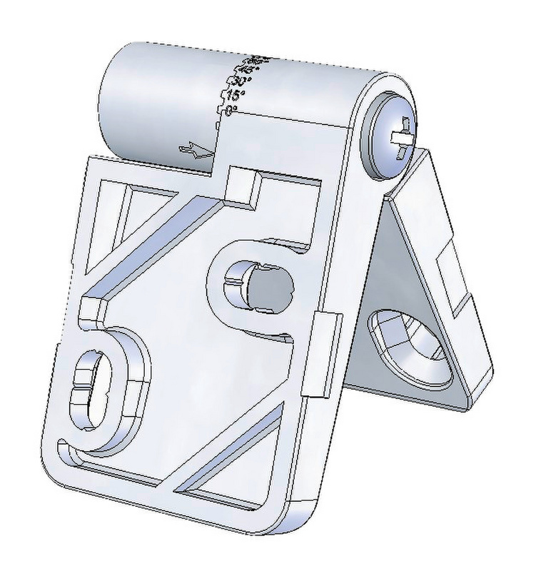 Material: Kunststoff Polyamid 6.6 Grad-Skalierung mit Feststellschraube Skalierung von 0° bis 90° im positiven und negativen Bereich Erleichterte Montage Langloch ermöglicht eine Ausrichtung in der Horizontalen und Vertikalen, Feinjustierung